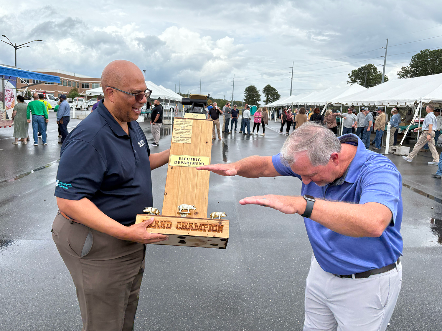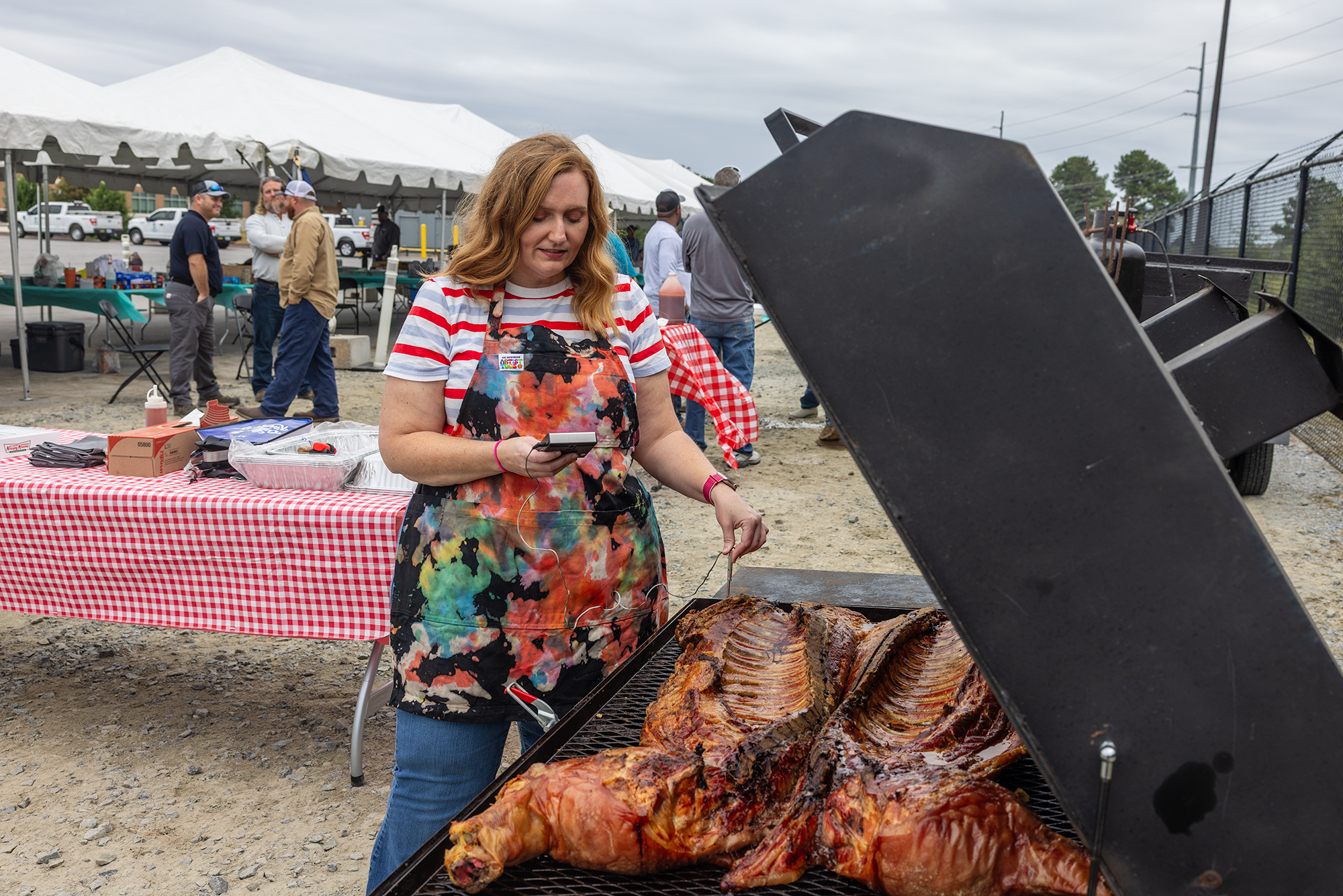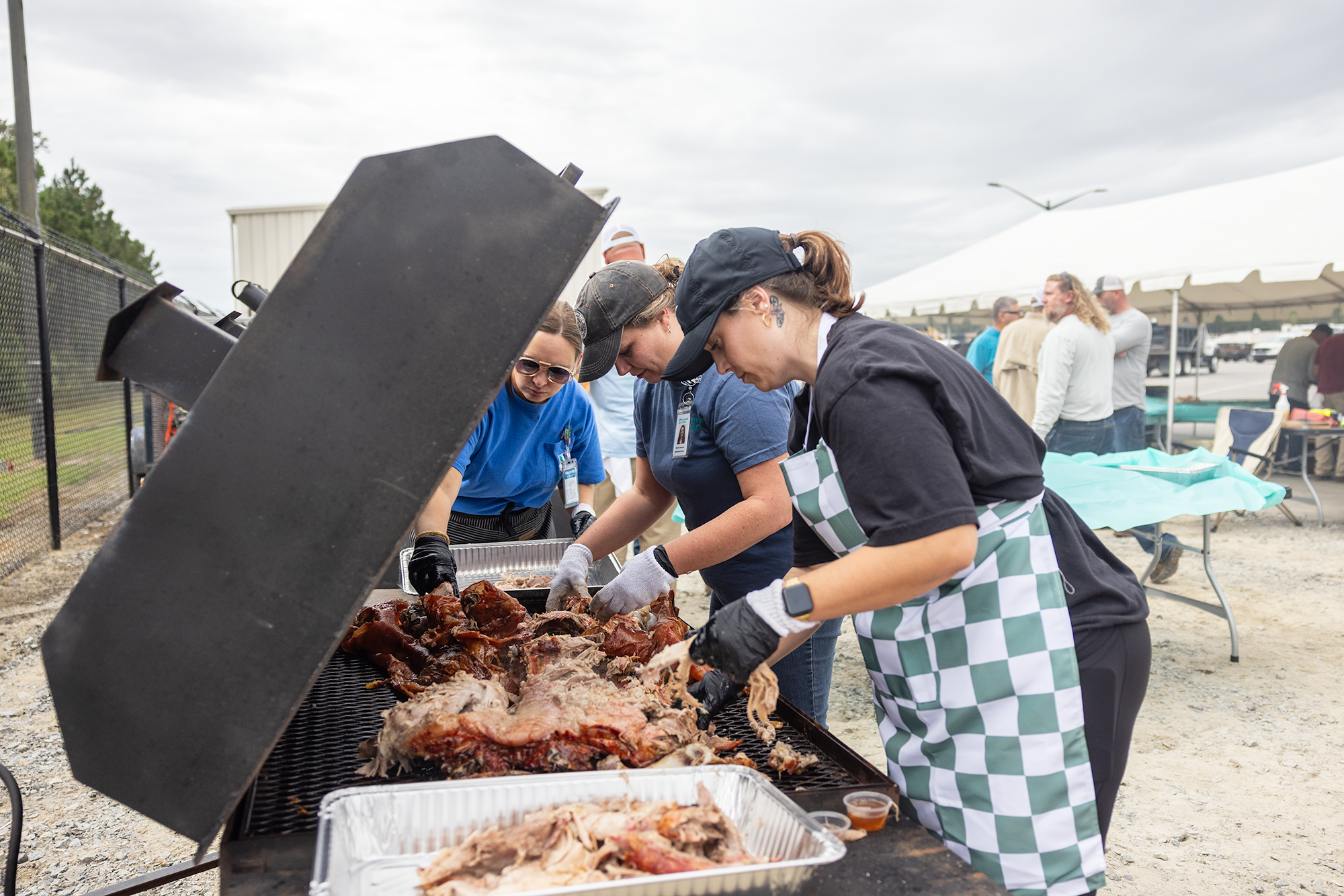 Another first-time for the 2025 Pitmaster Challenge was the all-women's team competing under the flag of the Main Office. This team hailed from multiple departments and took the Second-Place Overall trophy. The Main Office Team led by Amanda Wall (Finance), included Jessica Hardy (Finance), LeAnne Wetherington (Customer Relations), Erin Walton (Pub Info), and Melinda Sampson (Pub Info), with special assistance from Paige Wallace (General Manager’s Office).