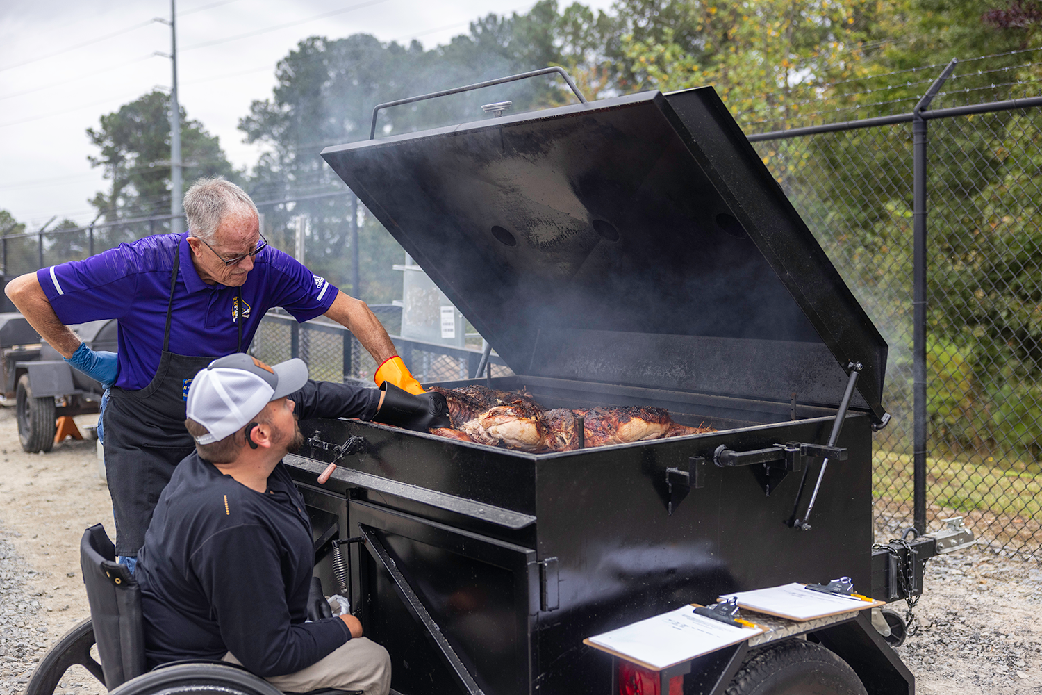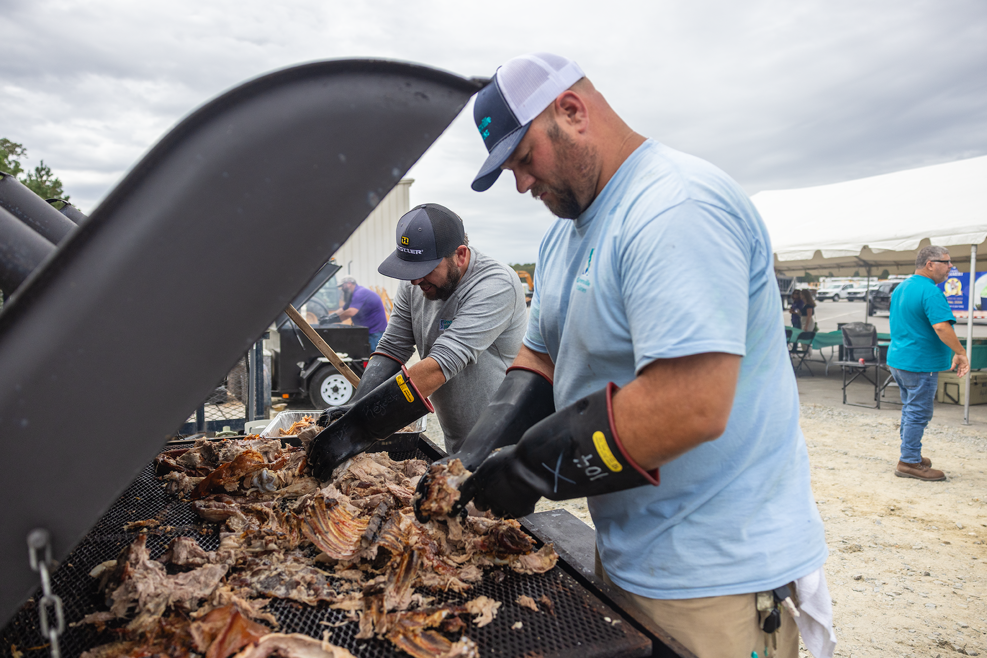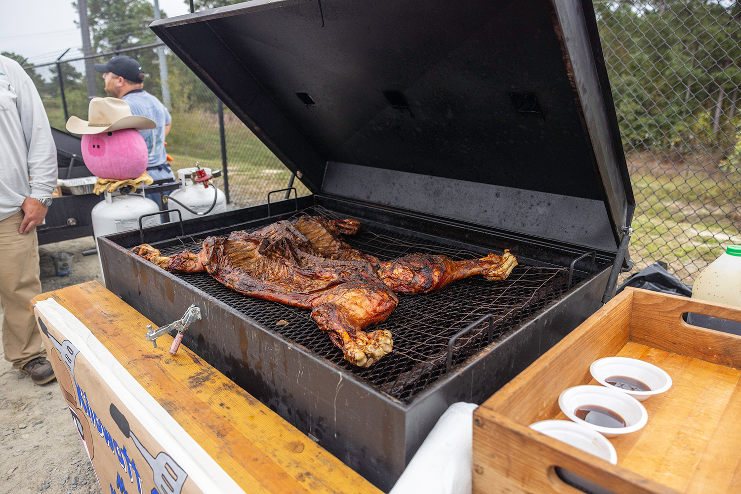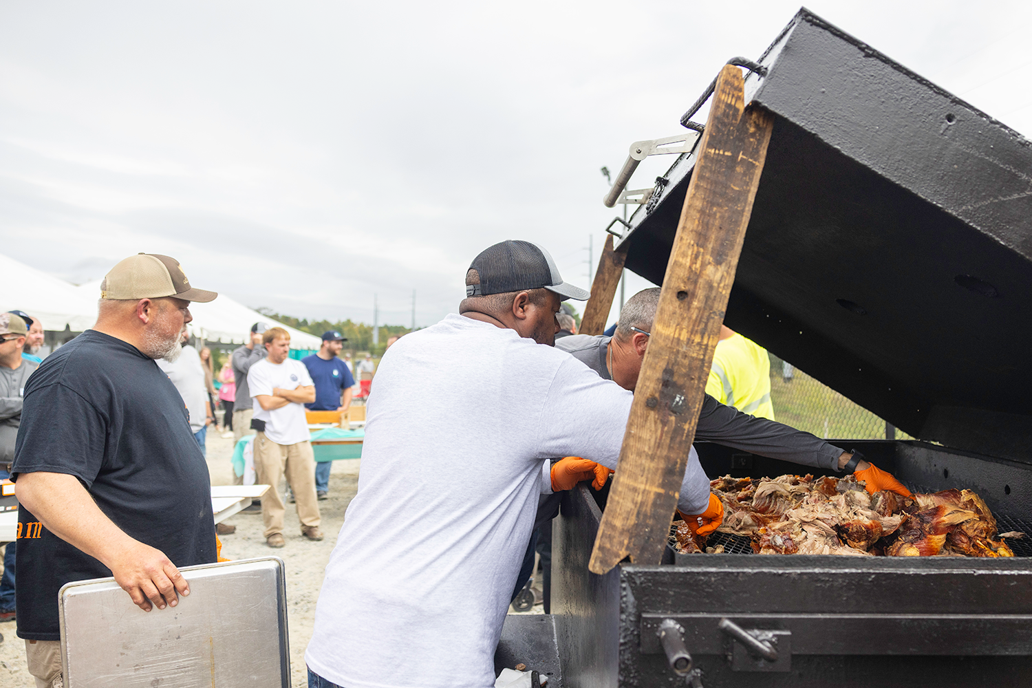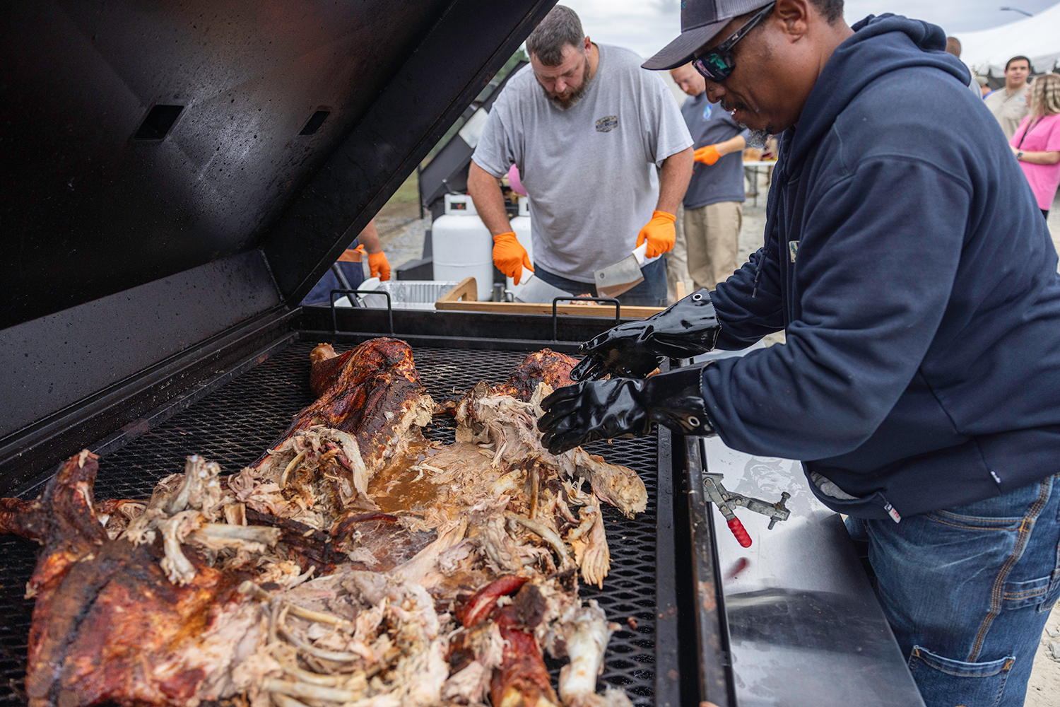 At 11:00 a.m., Charlie Martin, Whole Hog Cook-Off Master Judge; Nick Haase with Sam Jones BBQ; and Matt Jones with Jones Southern BBQ began judging. As grills opened one by one, the judges noted the pig’s appearance. They then folded the pigs in half on the grill making pig skin crackle and crunch. They judged the skin, the way the meat fell off the bone, and the flavor. Judges finished by sampling the sauce.