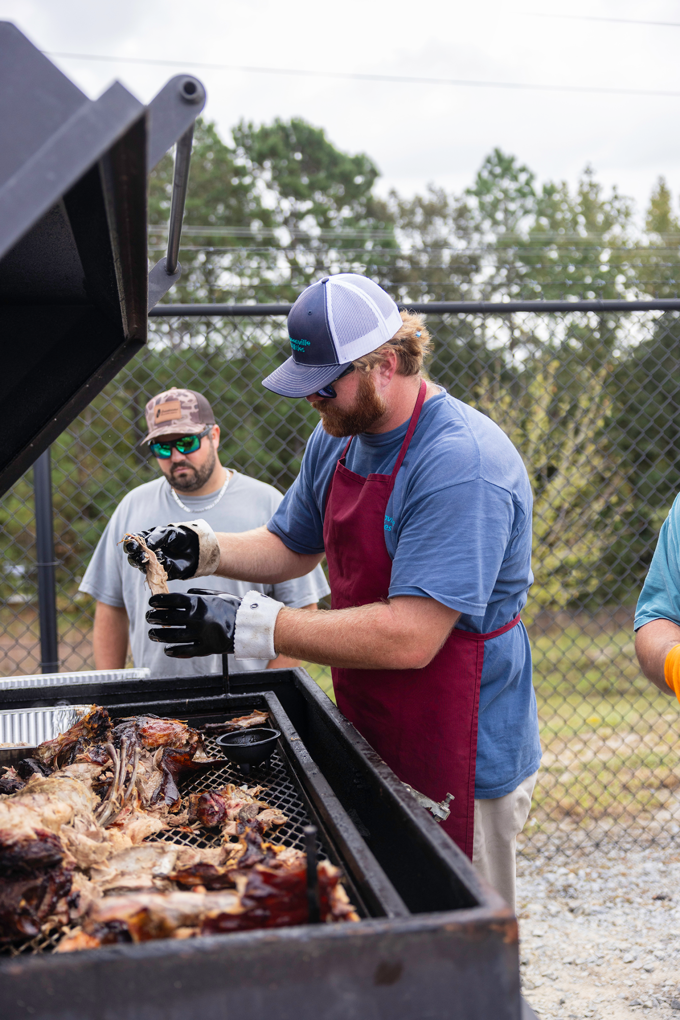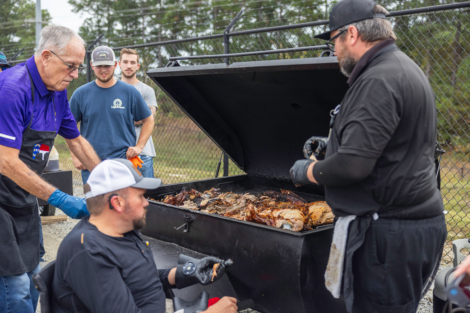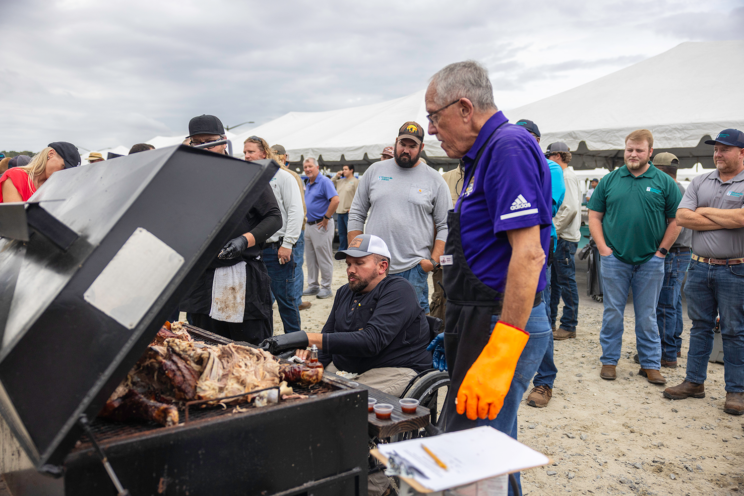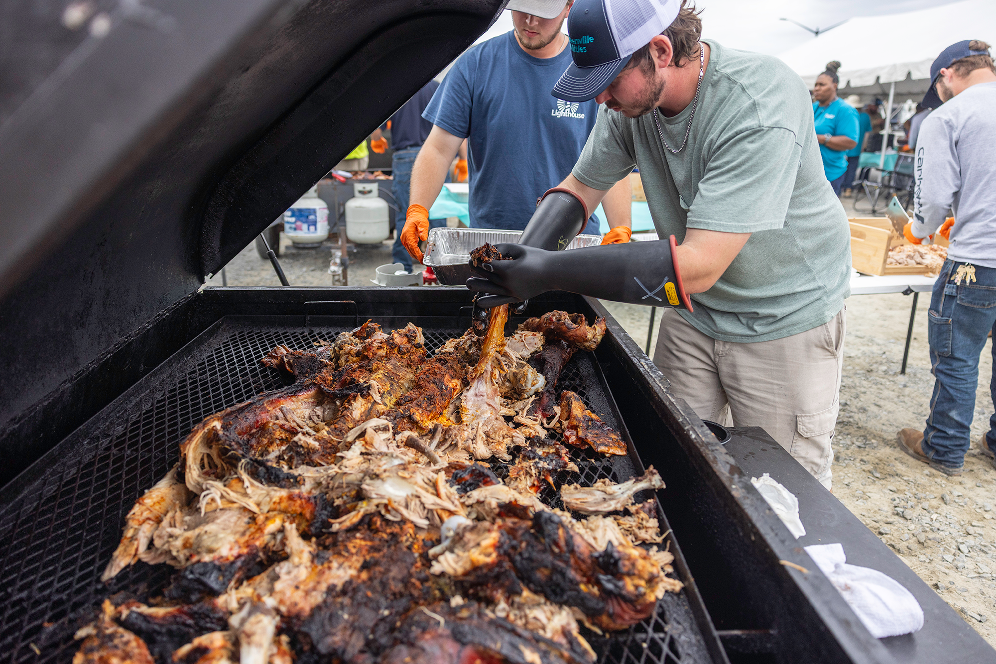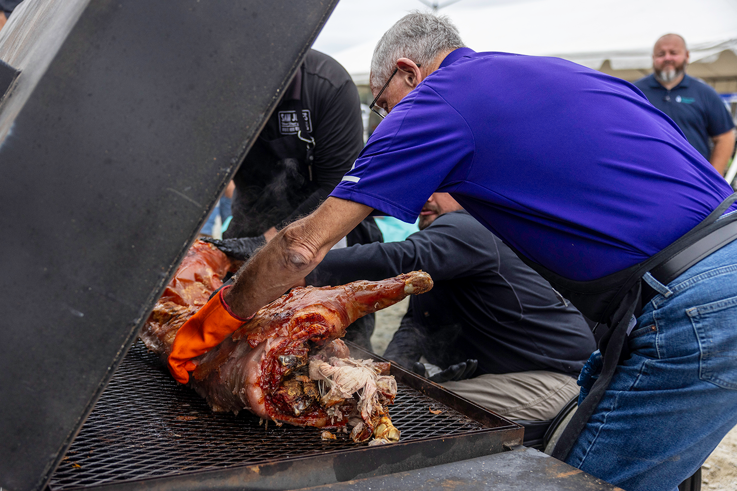 At 11:00 a.m., Charlie Martin, Whole Hog Cook-Off Master Judge; Nick Haase with Sam Jones BBQ; and Matt Jones with Jones Southern BBQ began judging. As grills opened one by one, the judges noted the pig’s appearance. They then folded the pigs in half on the grill making pig skin crackle and crunch. They judged the skin, the way the meat fell off the bone, and the flavor. Judges finished by sampling the sauce.